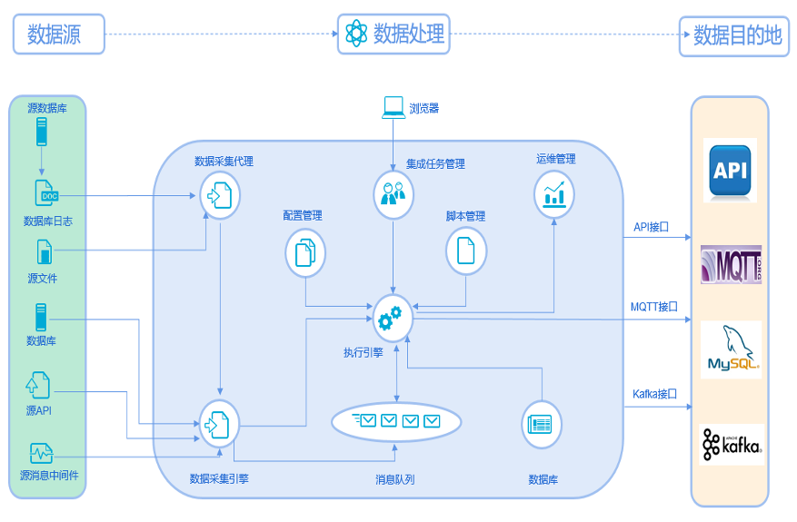数据集成套件作为适配中间件,用于异构平台之间的数据对接,提供多种数据源采集能力和数据目的推送能力,以及数据缓存、抽取、变形等处理能力,打通个各业务孤岛,实现数据互联互通,助力企业数字化转型。
