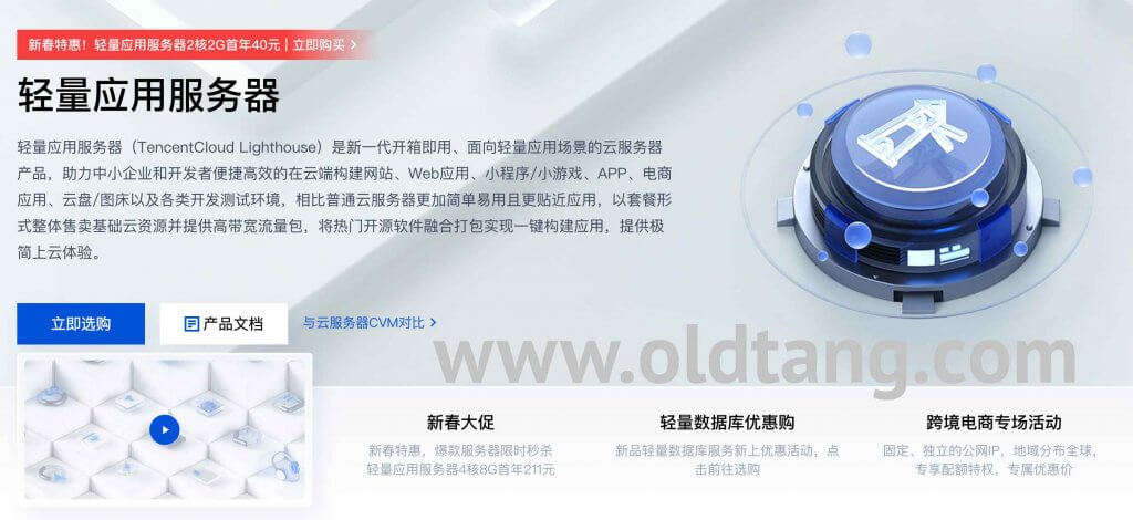 最近活动:《腾讯云 2022 新春采购活动正式开始!爆款2核2G云服务器首年40元》