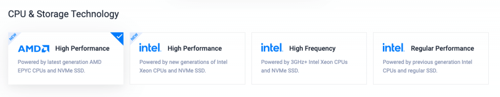 当您在控制面板中配置云计算实例时,这一点尤其明显。在该部分中,您将看到 CPU 和存储技术的新选项。