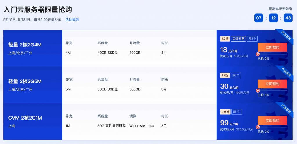 腾讯云限量抢购活动没什么意思,都只有三个月,建议购买下面的秒杀活动。