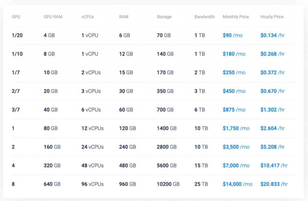 NVIDIA A100 的几分之一,起价仅为每月 90 美元