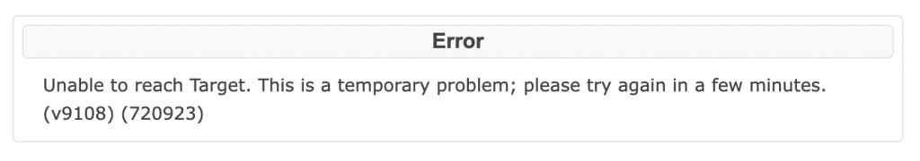 Unable to reach Target. This is a temporary problem; please try again in a few minutes.