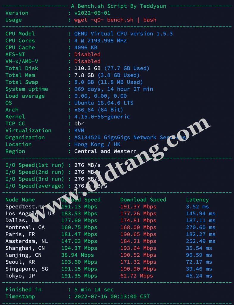 最近一直想清理一下 GigsGigsCloud 的一台香港 VDS,当年半价买的,当时看价格很便宜,但是现在看可能已经没什么价格优势了。但是因为懒,一直没清理,每个月还在续费。今天拿出来测评一下,看到已经稳定在线快 1000 天了,确实还是很稳定的。本文测评 GigsGigsCloud 香港 VDS 的速度、延迟、丢包率、路由跟踪等信息。
