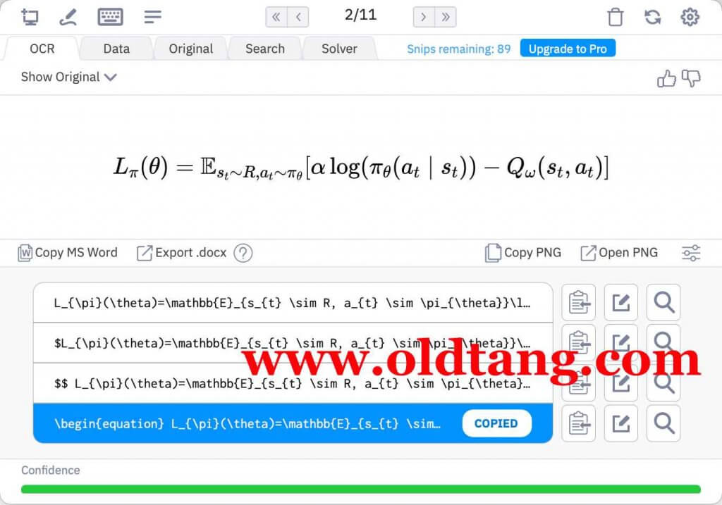 Mathpix Snip 是一个小工具软件,可以非常非常非常方便的将图片或者 PDF 中的公式识别为 LaTeX、DOCX、Overleaf、Markdown、Excel、ChemDraw 等公式代码,而不需要自己手动输入。之前可能没体会到这个工具的好处,直到这几天开始有大量复杂公式输入需求,才发现这个软件是真的真的神器,非常好用。目前看来是最好用的公式识别软件,没有之一,推荐大家使用。