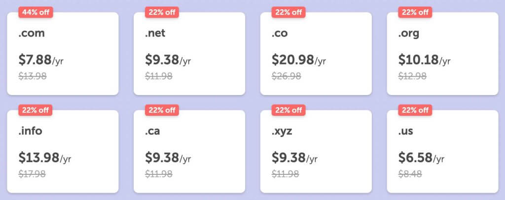 目前域名注册活动好像是直接注册就行了,不需要使用优惠码,.COM 域名注册价格低至 $7.88/首年,相当于是 5.6 折。(点击直达参与活动)