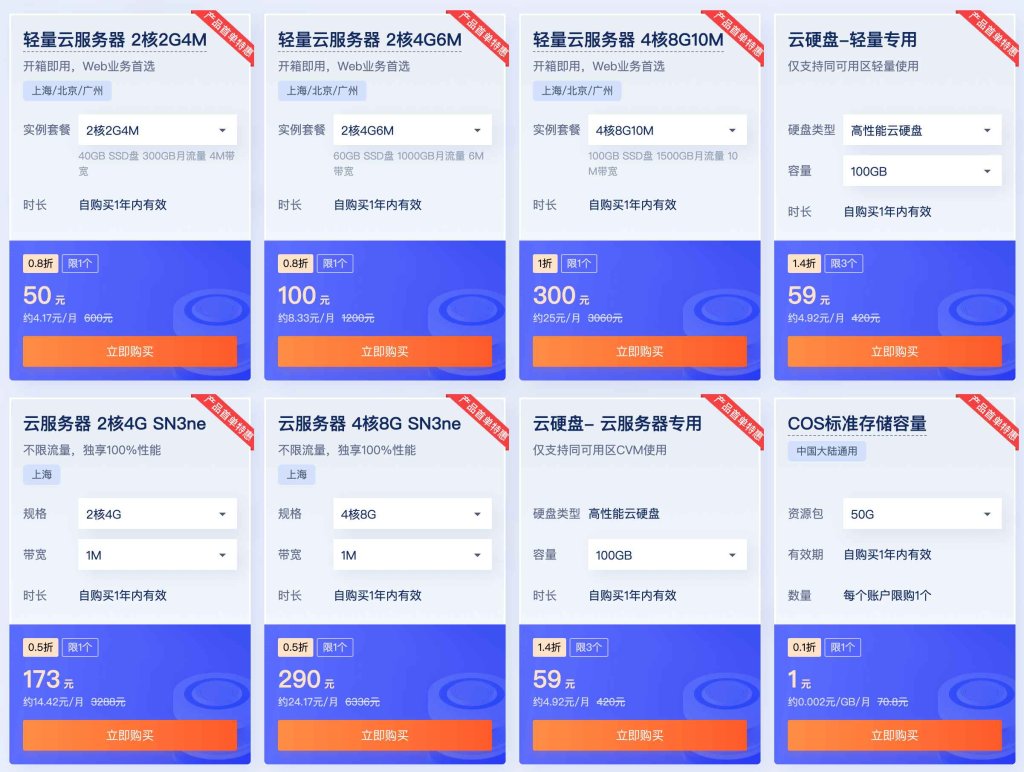 然后是 2022 双十一秒杀活动,秒杀一年轻量应用服务器只需要 50 元,还有 2核4G6M 的一年也只需要 100 元,买就对了。(点击直达)