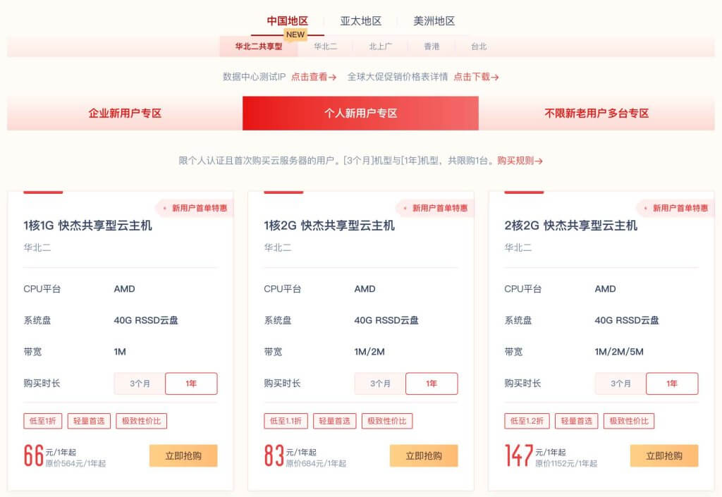 下面简单介绍一下 UCloud 2022 年双十一的一些活动内容,比如针对个人新用户,1核 1G 快杰共享型云主机只要 66 块钱一年,标题的 58 元一年是针对企业新用户的。当然也有针对不限新老用户的多台专区,但是价格就稍微贵一些了。