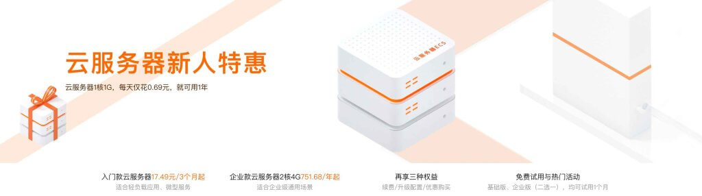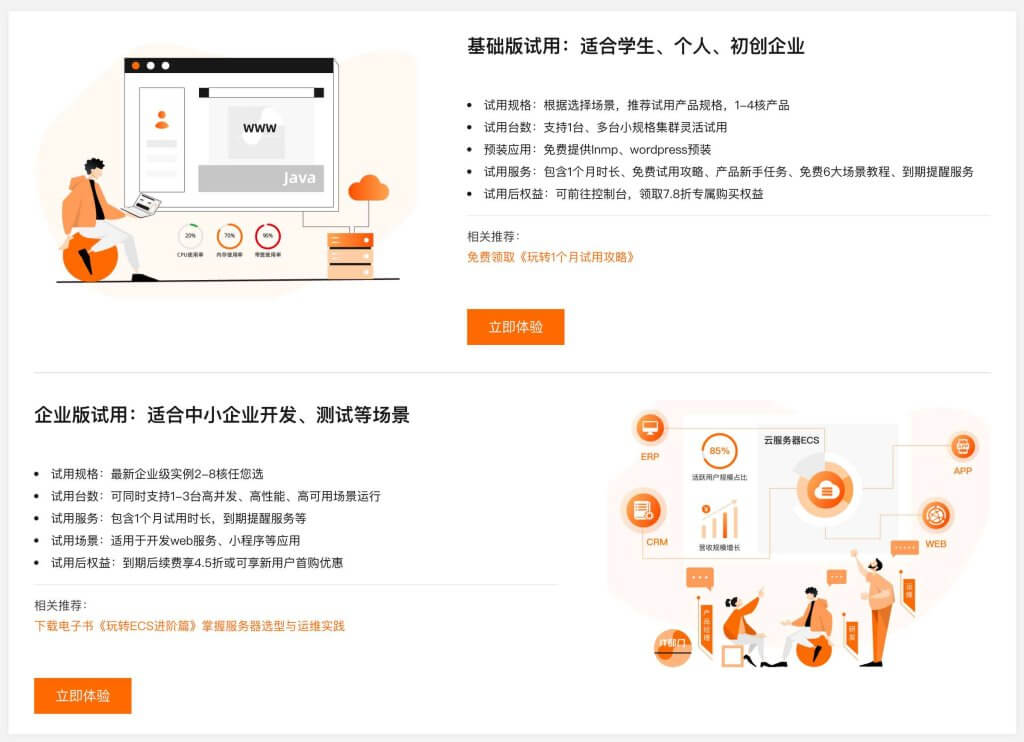 针对学生、个人、初创企业,阿里云气筒基础版试用,可以试用 1 个月时长。(点击直达)