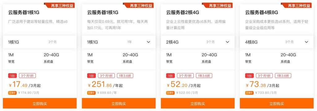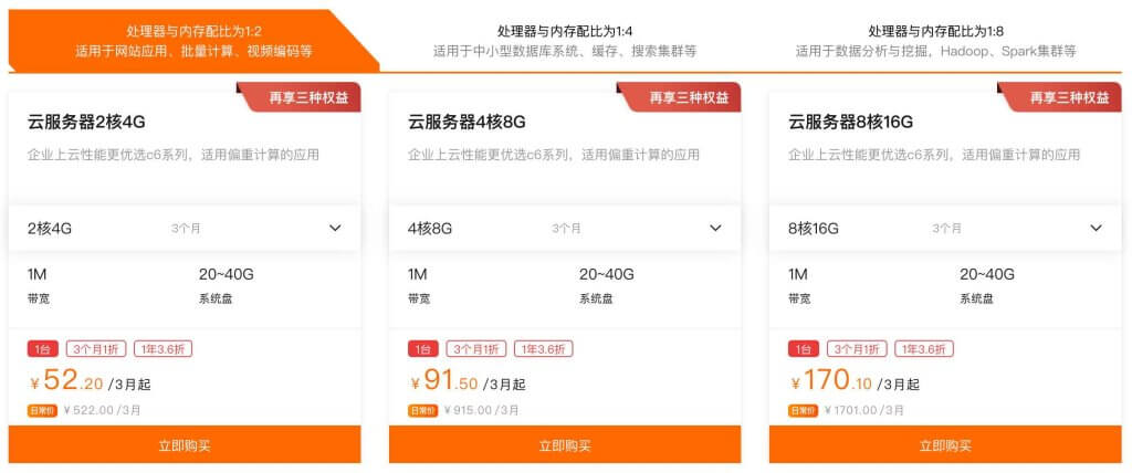 兼具成本与性能优势,适合通用场景。以下产品 3 个月、1 年时长二选一,购买后还享续费、规格升级、复购三种权益。(点击直达)
