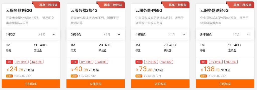 以下产品 3 个月、1 年时长二选一,购买后还享续费、规格升级、复购三种权益。(点击直达)