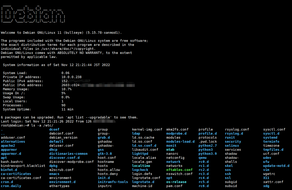 - preseed 过程针对 Debian 做了大量优化,预置常用组件,永久更改 DNS 为 CloudFlare、Google(需进系统后手动安装 resolvconf:echo “N” | apt install resolvconf -y ),vim 支持鼠标终端复制,不同文件类型不同彩色显示,ssh 连接欢迎页面显示系统占用、IP 信息,软件数更新提示;