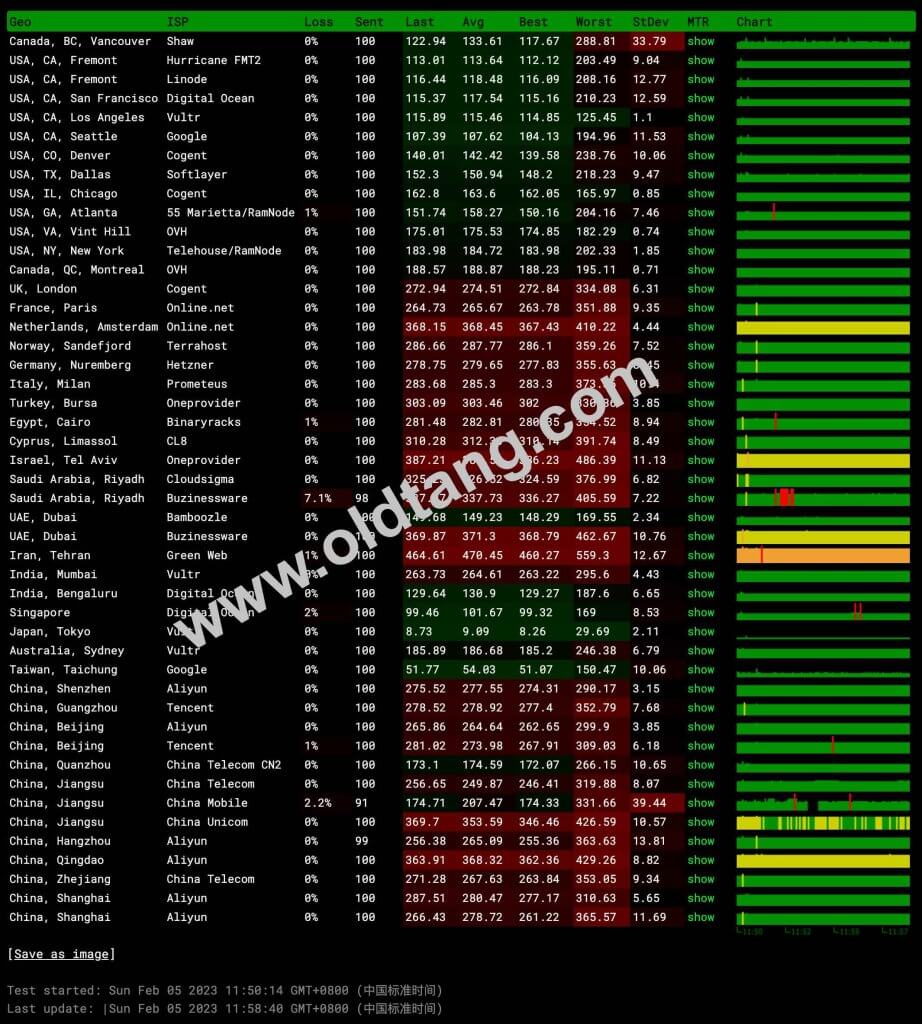 Vultr 日本大阪机房丢包率测试结果如下,也不咋样。
