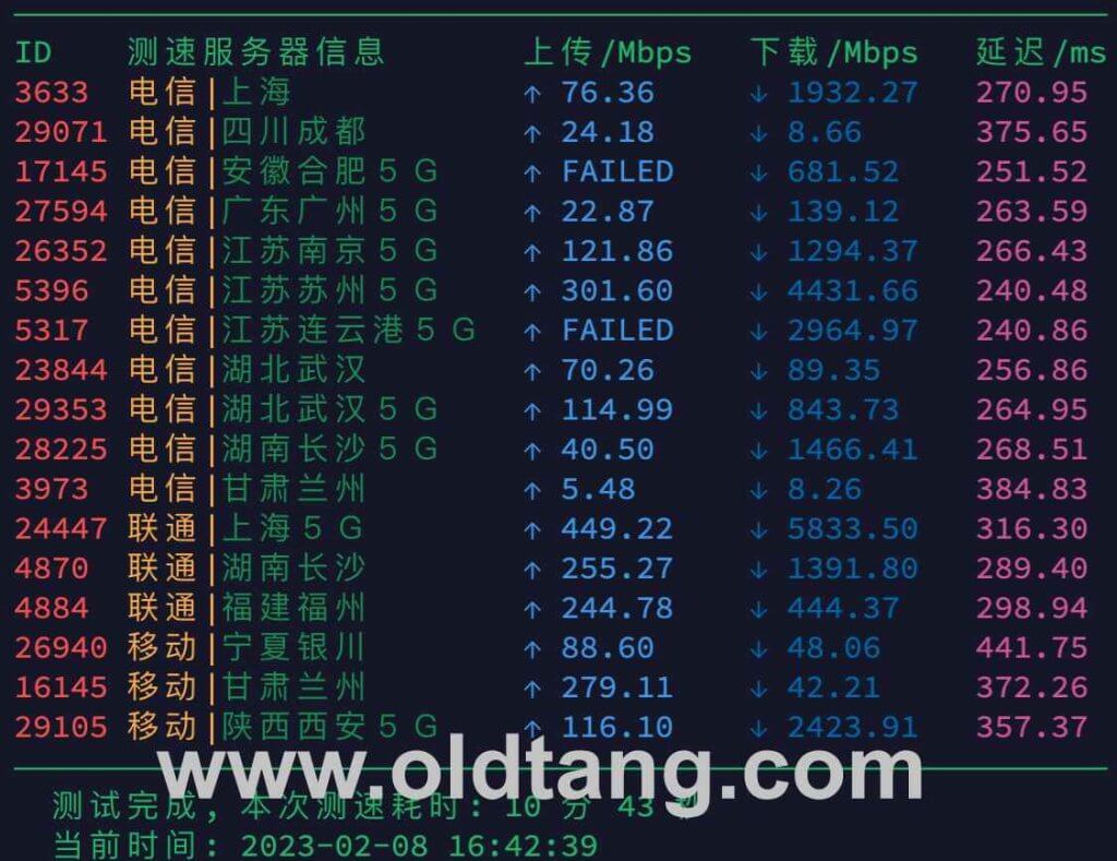 | 电信 | 江苏电信244.872ms | 新疆电信355.53ms | 284.857ms |