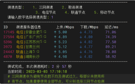 以下是随机测试工具自带的三网测速: