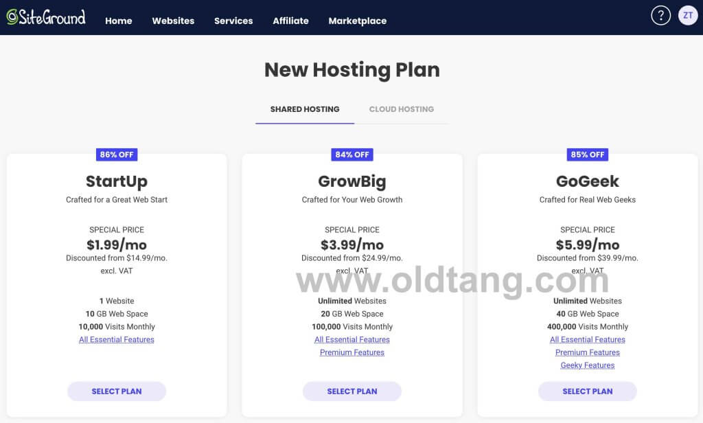 SiteGround 是一家非常有名的虚拟主机商家,已经有 19 年历史了。今天看到 SiteGround 为了庆祝他们 19 周年,搞了个活动,虚拟主机低至 1.4 折,四舍五入不要钱。推荐的是 GrowBig 套餐,可以有无限域名绑定,20GB 网站空间,一般都够用了。StartUp 套餐只能绑定一个网站,说实话有点不够用。