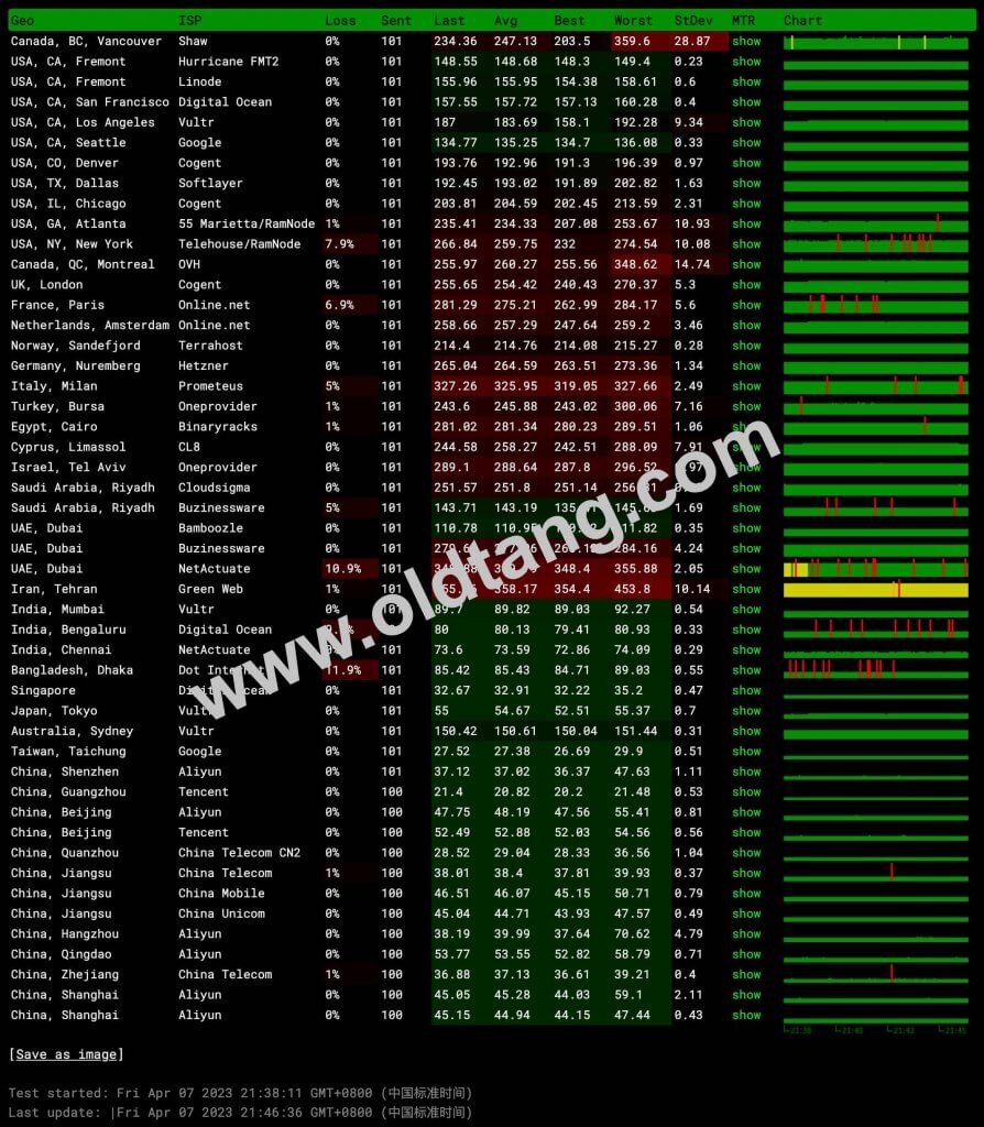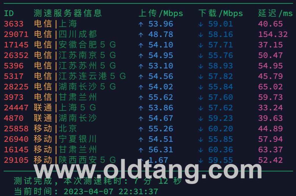 下面是开启 BBR 之后的第二次测试结果。不过速度基本上都是跑满带宽,所以测试结果没有太大区别。