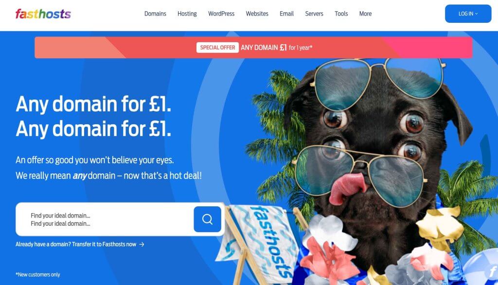 - 随后的年份和续订将按所选域名扩展的正常价格收费。此定价可在以下网址查看:https://www.fasthosts.co.uk/domain-names。