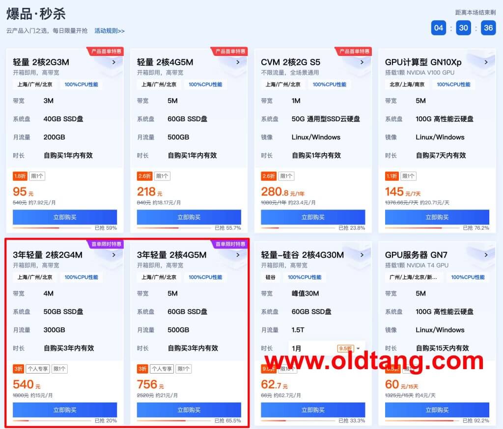 腾讯云又开始了新一轮秒杀活动,本次秒杀套餐有一些比较便宜的,主要是三年付的轻量应用服务器,三年最便宜的只要 540 元,相当于一年 180 元。腾讯云本次除了秒杀活动还有一些其他的,比如代金券、比如新老用户同享的优惠、比如续费专区等等。本文分享一下腾讯云主要活动内容。
