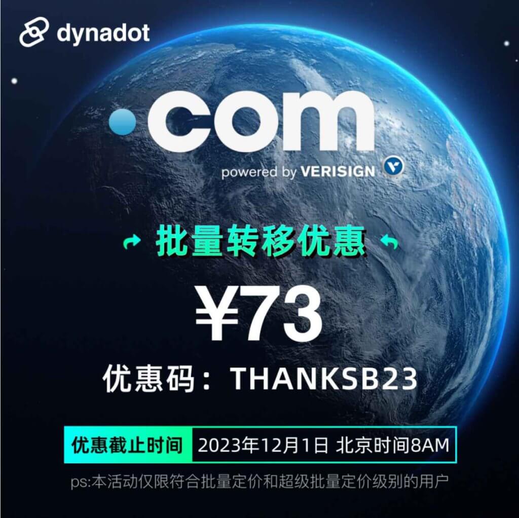 更多优惠:《2023年6月最新Dynadot域名优惠码 – .COM域名注册等多种后缀优惠》