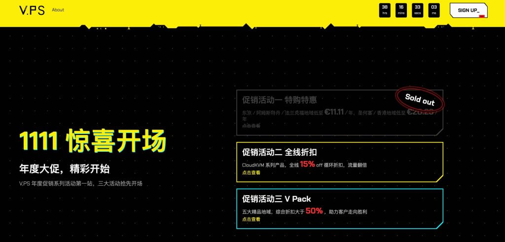 V.PS 开始了他们的双十一优惠活动,本文分享一下今年最新的 V.PS 双十一优惠活动内容,看起来活动还是挺丰富的。V.PS 官网地址如下。