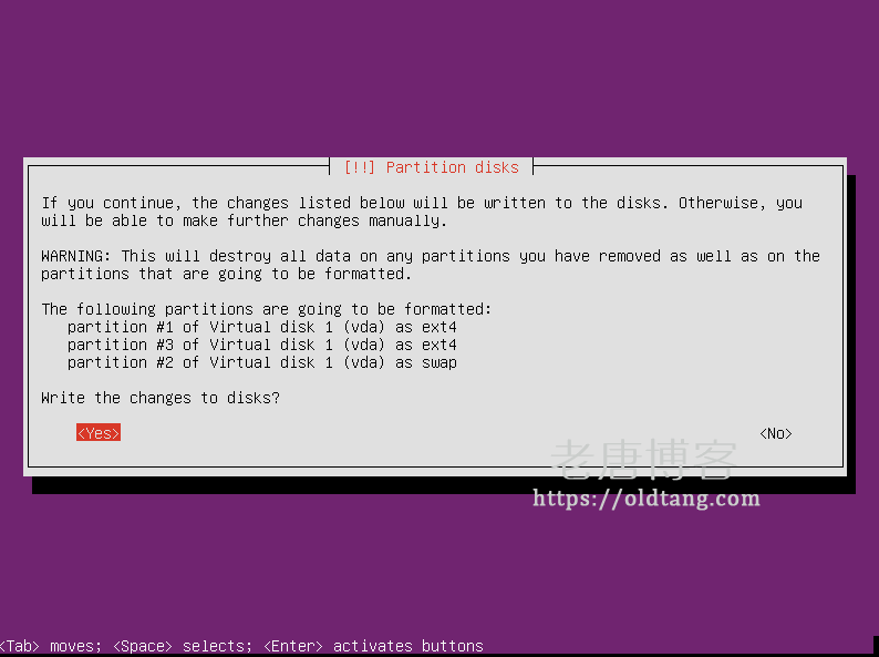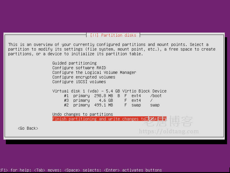 /swap 就不多说了,选择作为 swap 使用就行了。最后大概就是下面这个样子。