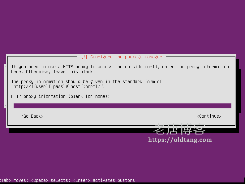 输入 HTTP proxy,一般没有的话直接回车就行了。