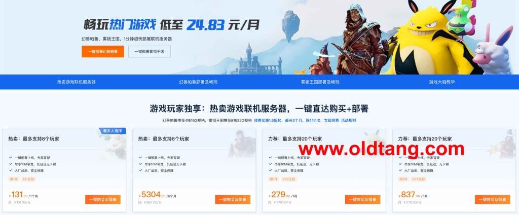 阿里云也推出了热门游戏服务器一键搭建,目前购买阿里云热门云服务器,或者是游戏服务器,可以通过阿里云提供的镜像和脚本进行一键搭建,1 分钟就可以启动游戏服务器,非常方便快捷。并且价格也很便宜,目前最低仅需 24 元/月就可以启动联机游戏服务器了。