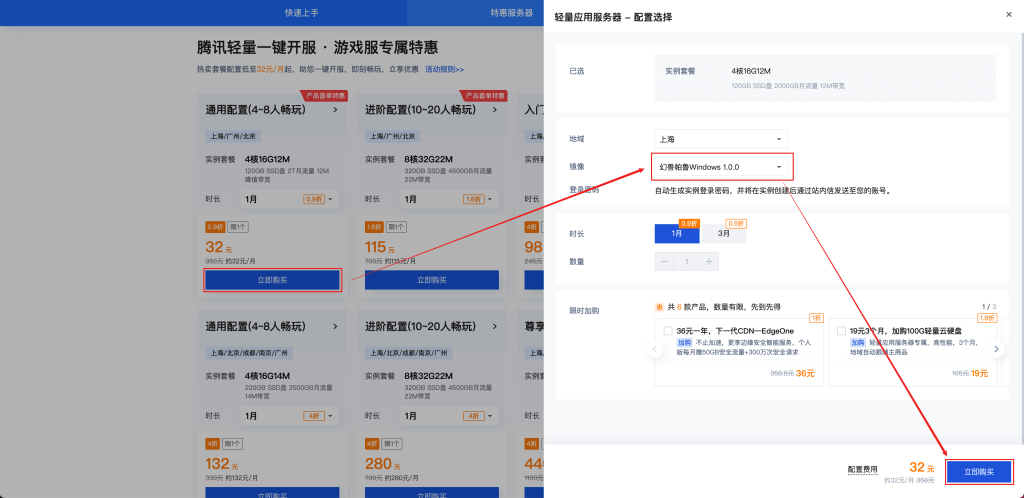 在购买页中确认购买所需的其余选项后,单击【立即购买】即可: