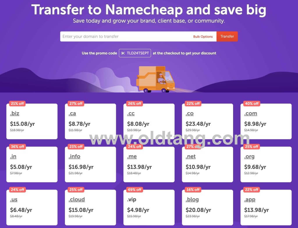 NameCheap 的域名转入优惠活动又开始啦,上次活动还是在 7 月份的时候,参考《NameCheap 域名转入活动回归!最低仅需 $5 美元即可转入域名!》,这次的转入活动优惠力度还是很大,比如 COM 域名仅需 $8.98/年即可进行转入。本文快速为大家分享一下 NameCheap 最新的域名转入优惠活动,方便大家享受优惠。