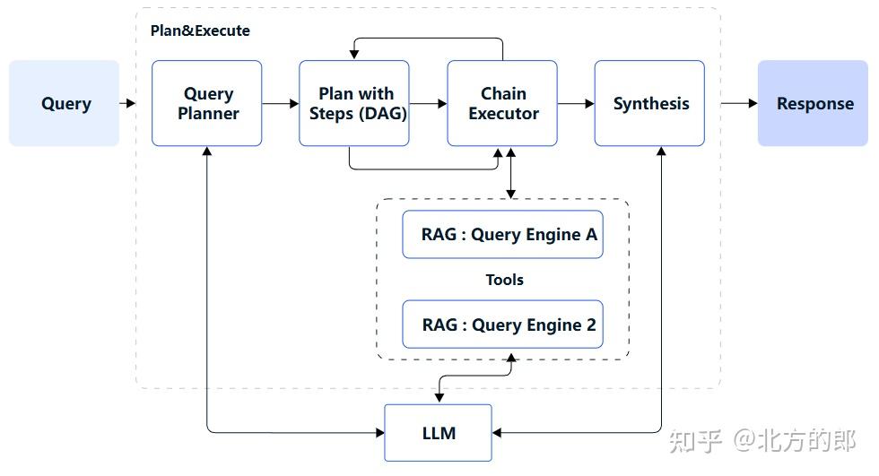 - 这需要规划者和执行者的存在。规划者通常使用大型语言模型(LLM)根据用户查询制定逐步计划。然后,执行者执行每个步骤,识别完成任务所需的工具。此迭代过程持续进行,直到整个计划执行完毕,最终呈现最终响应。