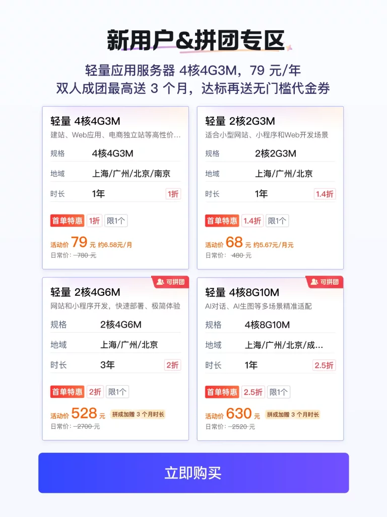 - 2核4G 等热门机型参与活动!