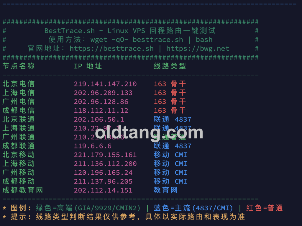 # 使用方法:wget -qO- besttrace.sh | bash #