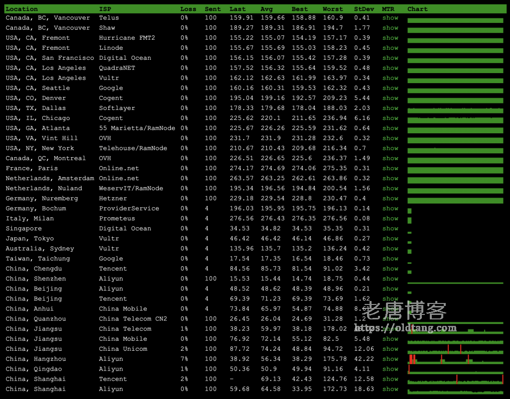 ---------------------------------------------------------------------- 上海移动 traceroute to 183.192.160.3 (183.192.160.3), 30 hops max, 60 byte packets 1 172.26.22.118 1.35 ms * 局域网 2 172.31.161.144 0.65 ms * 局域网 3 172.31.160.217 1.19 ms * 局域网 4 172.31.160.193 1.54 ms * 局域网 5 172.31.163.66 1.45 ms * 局域网 6 43.252.86.209 1.54 ms AS10099 中国 香港 联通 7 202.77.18.161 4.03 ms AS10099 中国 香港 联通 8 202.77.18.98 3.99 ms AS10099 中国 香港 联通 9 61.14.201.73 7.32 ms * 中国 香港 联通 10 43.252.86.65 7.74 ms AS10099 中国 香港 联通 11 202.77.23.25 1.81 ms AS10099 中国 香港 联通 12 219.158.10.49 11.91 ms AS4837 中国 广东 广州 联通 13 219.158.96.210 9.59 ms AS4837 中国 广东 广州 联通 14 219.158.103.41 70.23 ms AS4837 中国 广东 广州 联通 15 219.158.111.253 76.89 ms AS4837 中国 上海 联通 16 219.158.9.98 72.92 ms AS4837 中国 上海 联通 17 219.158.34.242 76.20 ms AS4837 中国 上海 联通 18 221.176.17.165 77.90 ms AS9808 中国 上海 移动 19 221.183.12.174 78.74 ms AS9808 中国 上海 移动 20 117.185.10.130 81.05 ms AS9808 中国 上海 移动 21 120.204.194.6 79.44 ms AS9808 中国 上海 移动 22 120.204.194.14 84.07 ms AS9808 中国 上海 移动 23 * 24 * 25 * 26 * 27 * 28 * 29 * 30 * ---------------------------------------------------------------------- 成都移动 traceroute to 183.221.253.100 (183.221.253.100), 30 hops max, 60 byte packets 1 172.26.22.118 1.35 ms * 局域网 2 172.31.161.144 0.76 ms * 局域网 3 172.31.160.217 1.21 ms * 局域网 4 172.31.160.193 2.20 ms * 局域网 5 172.31.163.66 1.14 ms * 局域网 6 43.252.86.209 1.55 ms AS10099 中国 香港 联通 7 202.77.18.161 3.84 ms AS10099 中国 香港 联通 8 202.77.18.101 3.97 ms AS10099 中国 香港 联通 9 61.14.201.73 8.14 ms * 中国 香港 联通 10 43.252.86.65 4.93 ms AS10099 中国 香港 联通 11 202.77.23.25 2.75 ms AS10099 中国 香港 联通 12 219.158.10.49 10.19 ms AS4837 中国 广东 广州 联通 13 219.158.24.137 6.17 ms AS4837 中国 广东 广州 联通 14 219.158.97.1 35.81 ms AS4837 中国 广东 广州 联通 15 219.158.105.10 68.32 ms AS4837 中国 四川 成都 联通 16 219.158.109.14 71.12 ms AS4837 中国 四川 成都 联通 17 219.158.44.194 79.27 ms AS4837 中国 四川 成都 联通 18 221.176.20.209 77.79 ms AS9808 中国 四川 成都 移动 19 221.183.19.42 76.75 ms AS9808 中国 四川 成都 移动 20 183.221.32.30 79.65 ms AS9808 中国 四川 成都 移动 21 223.87.85.54 70.43 ms AS9808 中国 四川 成都 移动 22 183.221.253.100 66.39 ms AS9808 中国 四川 成都 移动 ----------------------------------------------------------------------