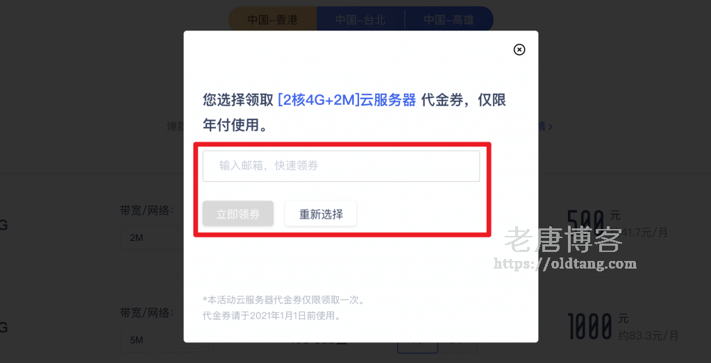 在弹出窗口中,填写邮箱,即可领取代金券。