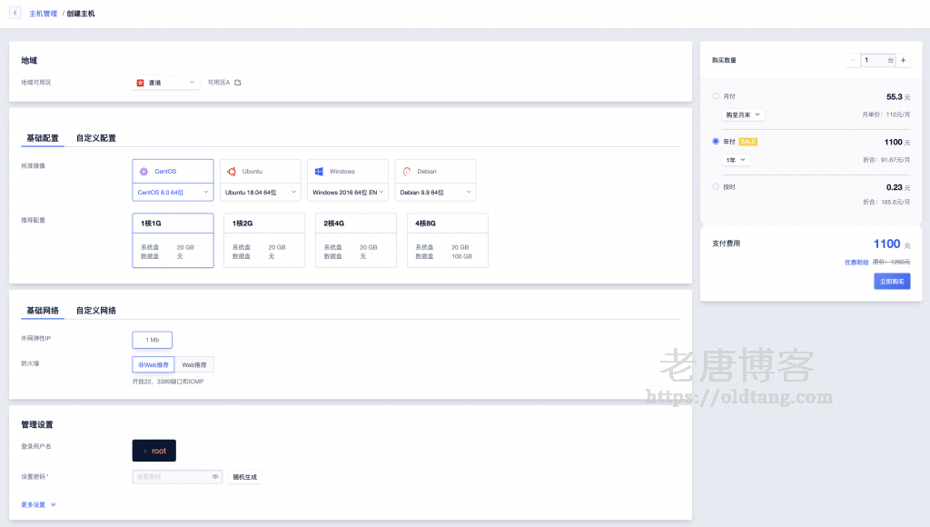 点击页面的创建主机,就会进入 UCloud 新购页面,如图所示:
