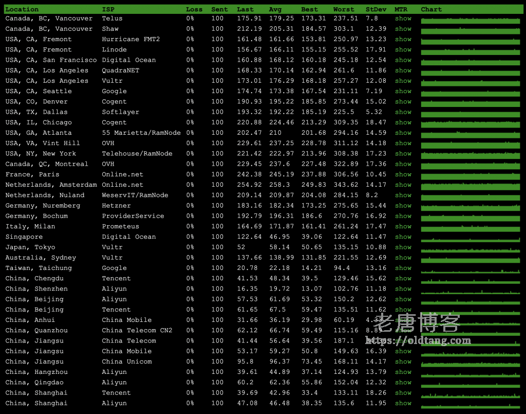 下面是搬瓦工香港 CN2 GIA 丢包率测试,全网 0 丢包,不管是国内还是国外,都没有丢包,用来建站非常稳。