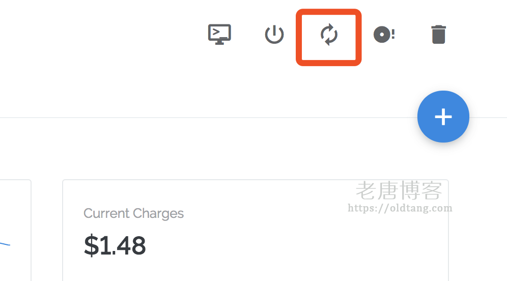 接下来还有最关键的一步,需要去 Vultr 后台重启一下 VPS,否则配置是不会生效的。重启很简单,还是在 VPS 的页面,右上角这个小按钮: