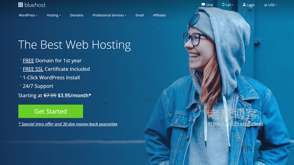 BlueHost 目前最低仅需 $3.95/月起步,购买时长越长,折扣越大。