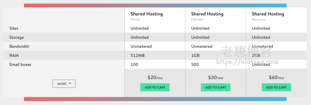 MediaTemple,贵就对了。土豪的建站选择,建议不差钱的朋友们直接买。目前发现 MediaTemple 已经开始使用 AWS 的服务器,当然他们主要是卖的服务,基本都是全管理的虚拟主机和 VPS。MediaTemple 成立于 1998 年,历年来口碑都很好,唯一的缺点可能就是贵,目前最便宜的需要 $20 一个月,包括虚拟主机和 WP 专用主机等。此外也有管理型 VPS 出售,最便宜需要 $30 一个月,可能用户群和低价 VPS 不太一样。