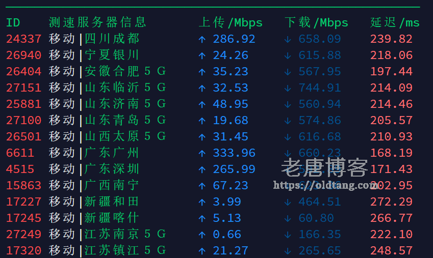 下面是测速结果,从测速结果来看,联通的表现最好,基本上各个地区联通速度都挺快。其次是电信,大概有超过一半的地区速度很快,剩下几个地区的电信就特别慢了,所以大家需要提前测试。而移动的话整体速度偏慢,但是也够用。