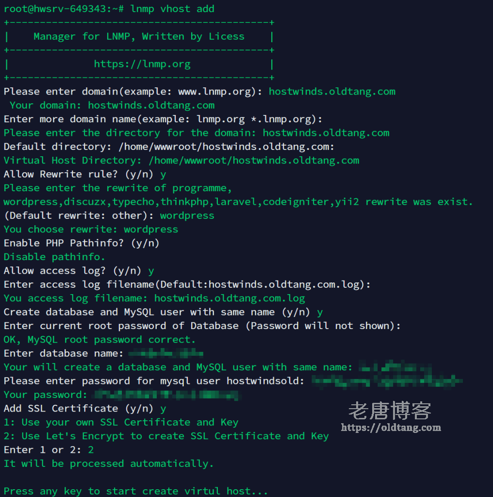 安装之后,输入下面命令开始新增网站: