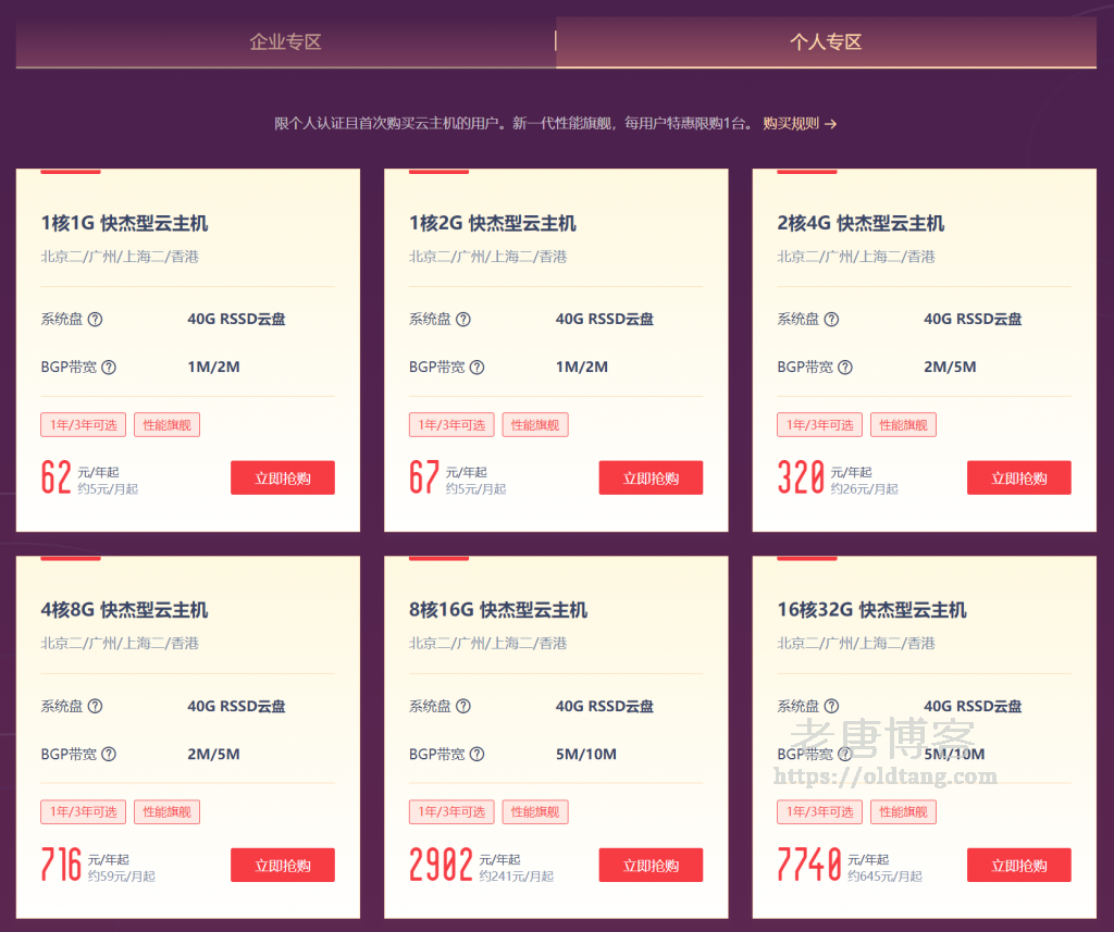 首先是针对新用户的活动,包括企业和个人新用户,价格非常便宜,最低仅需 62 元一年。