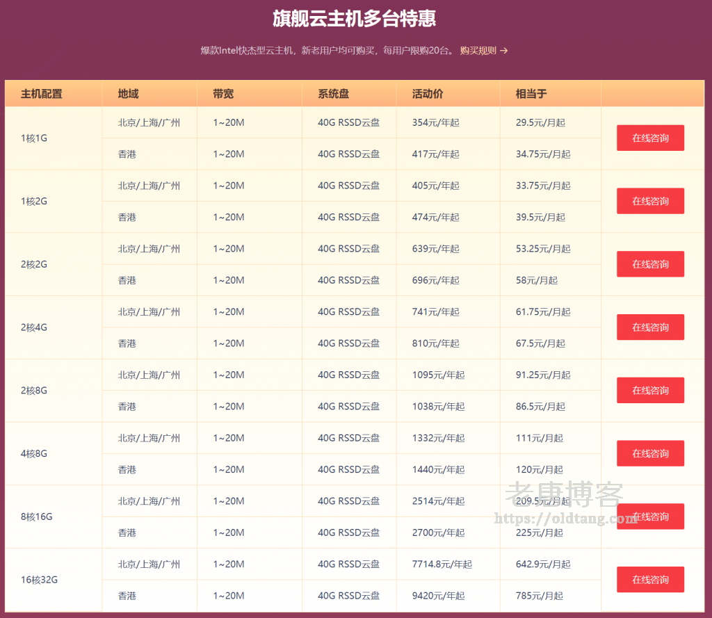 UCloud 年度大促开启,价格还是很便宜的,而且看了一下包括香港机房,这就比较实在了。不过对于香港机房,老唐建议最多只需要购买 2M 带宽即可,因为 2M 以上带宽都会被限制在 2M(UCloud 香港机房带宽问题:2M 以上带宽到大陆方向均会被限速),这点是大家需要非常注意的。如果购买 2M 的方案还是很便宜的,也推荐购买。这次活动新老用户都可以参加,新用户的价格便宜点,老用户的价格稍微贵点,不过总体也算是便宜。