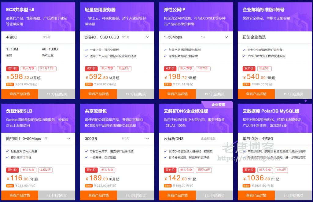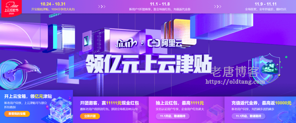 一年一度的双十一马上到来,阿里云的双十一优惠活动也如期而至。不过活动力度就非常一般了,比不过腾讯云的,也比不过 UCloud。不过阿里云毕竟还是在国内市场占有率第一的,所以活动还是可以看一下。本次阿里云双十一优惠活动大多数还是新用户活动,老用户的折扣很少,或者力度很少。阿里云云服务器还是很稳定的,这次最低折扣后仅需 85 元一年,云数据库的话更是只需 19 元一年。