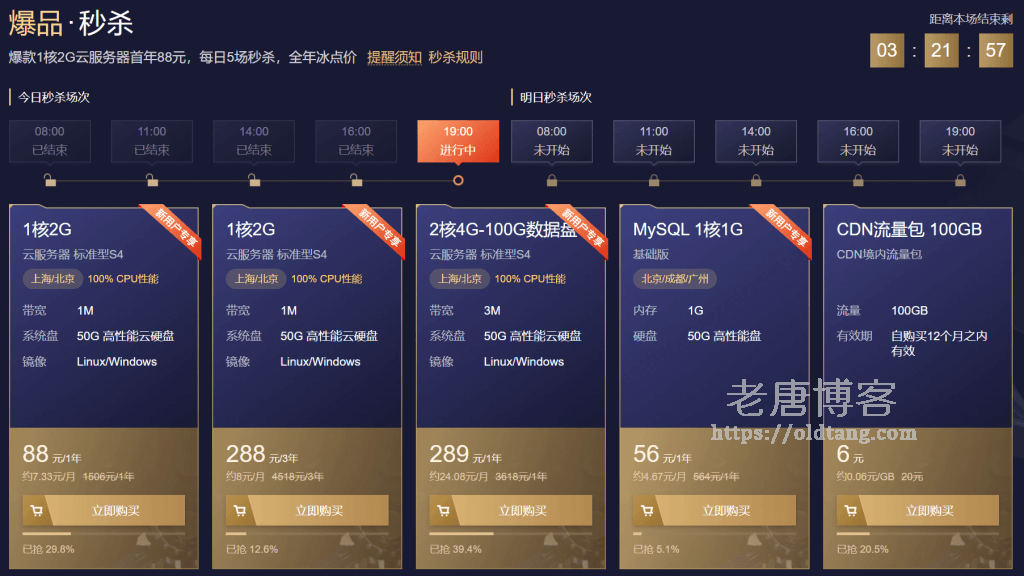 爆品秒杀分为新用户专享和新老用户同享,一般来说新用户的折扣力度比较大,最便宜的仅需 88 元/年,如果是老用户的话折扣力度相对比较低点,我们可以注册一个新用户再来参与活动。(点击参与活动)