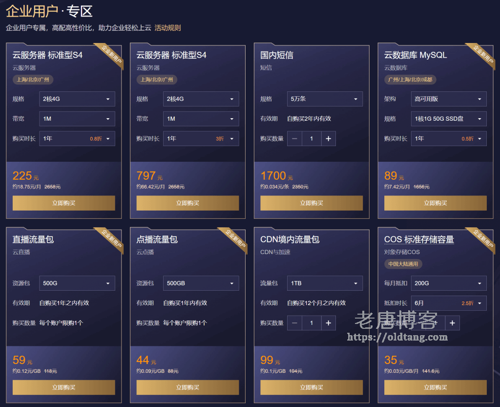 企业用户专区,针对企业用户的优惠力度比较大。不过需要进行企业认证,就是需要有企业资质。如果你正好有公司,不妨认证了进行购买,企业新用户是折扣力度最大的。(点击参与活动)