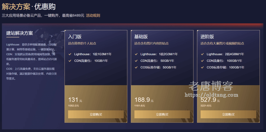 解决方案,就是说打包一些云产品,方便你针对不同场景打包选购。主要包括建站解决方案、企业解决方案等一些,大家可以根据需求进行选择。(点击参与活动)