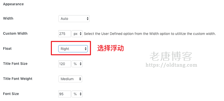 - 最后再选择一下浮动位置,建议浮动在右侧。