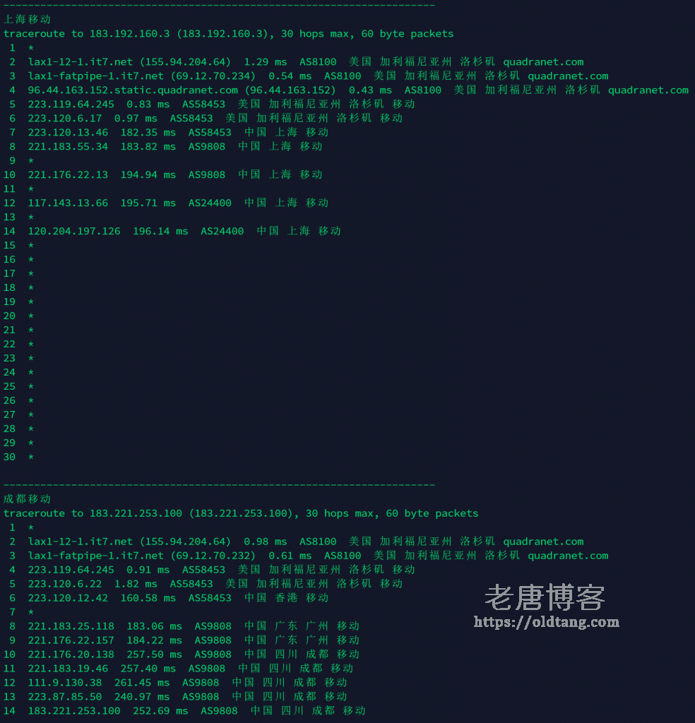 | 移动 | 广东广州(移动) 167.4ms/江苏南通(移动) 314.8ms | 215.8ms |