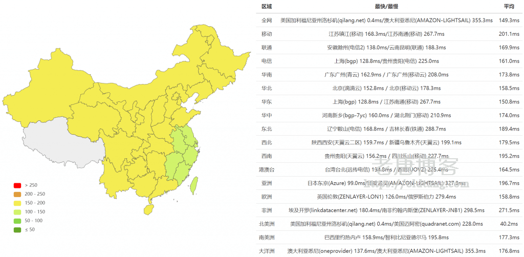 从延迟测试结果来看,肯定是香港机房延迟最好,然后是洛杉矶中美极速专线,最后的洛杉矶普通方案延迟真的就很一般了。